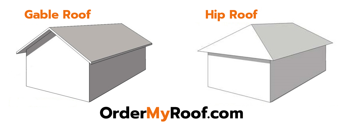 Whether you do or do not have a hip roof is important because hip roof require more shingles than gable roofs do. Hopefully the graphic to the left is helpful, but by definition a hip roof is a type of roof where all sides slope downwards to the walls. Thus a house with a hip roof has no gables ends or other vertical sides to the roof.